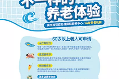 炎炎夏日,酷热难耐,老年人更是面临多重健康隐患。欧葆庭仙林国际颐养中心特推出免费体验日,邀请本市老年人前来感受一下法式特色养老服务!恒温SPA水疗池、夏季音乐节、缤纷美食节,多种多样的玩法令人眼前一亮,原来老年生活可以这么High!什么是水疗SPA?水中康复训练是欧洲流行的老年人康养手段之一,现在在我国也逐渐得到广大老年朋友和家属的认可。欧葆庭设有恒温水疗池,并配有专业