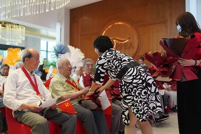 “没有共产党就没有新中国,没有共产党就没有新中国,共产党辛劳为民族,共产党他一心救中国……”伴随着朴实的歌词,铿锵的旋律,刚劲有力的舞姿,“情系建党节,爱驻欧葆庭,党的光辉照耀我心”庆祝建党百年华诞文艺演出在欧葆庭仙林国际颐养中心拉开序幕。回顾百年辉煌党史,颐养中心的长辈们纷纷用自己的方式向党献出了最诚挚的祝福。抗美援朝老战士张爷爷写下《千寿图》向党的百年华诞献礼,喜爱口琴