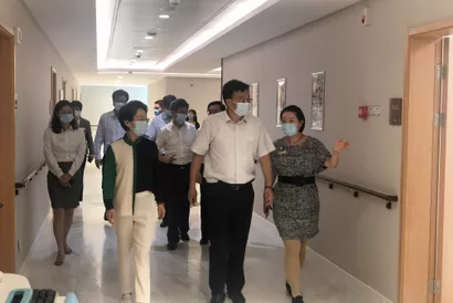 7月6日,江苏省人民政府副省长胡广杰、省人民政府政府副秘书长谢润盛、省民政厅厅长吕德明,走访南京欧葆庭仙林国际颐养中心,调研南京市机构养老服务工作情况。南京市政府副市长、党组成员霍慧萍,市民政局局长蒋蕴翔,市民政局副局长陈芳,栖霞区委书记黎辉陪同调研。欧葆庭仙林国际颐养中心院长邢珊珊及副院长王奕琦、黄宣尧接待并讲解服务特色,展示了生活环境、文化娱乐和医疗康复设施。副省长一行参观