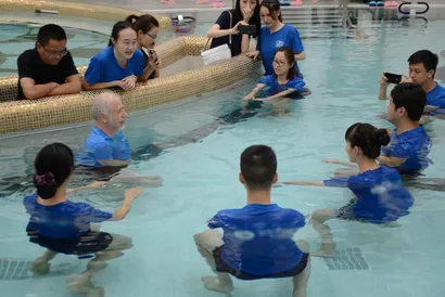 2017年7月29-30日,医疗、康复、养老各界专业人士齐聚欧葆庭仙林国际颐养中心,参加了为期2天的由国际水中康复协会中国分会专家讲师主持的课程和实操培训。 江苏省康复医学会会长励建安教授说道:“在水中,借助水的浮力和阻力,可以帮助患者实现陆地上难度较大的动作。同时水流形成的力量可以帮助锻炼平衡能力。而在水下进行的各种操作则可以帮助了解患者