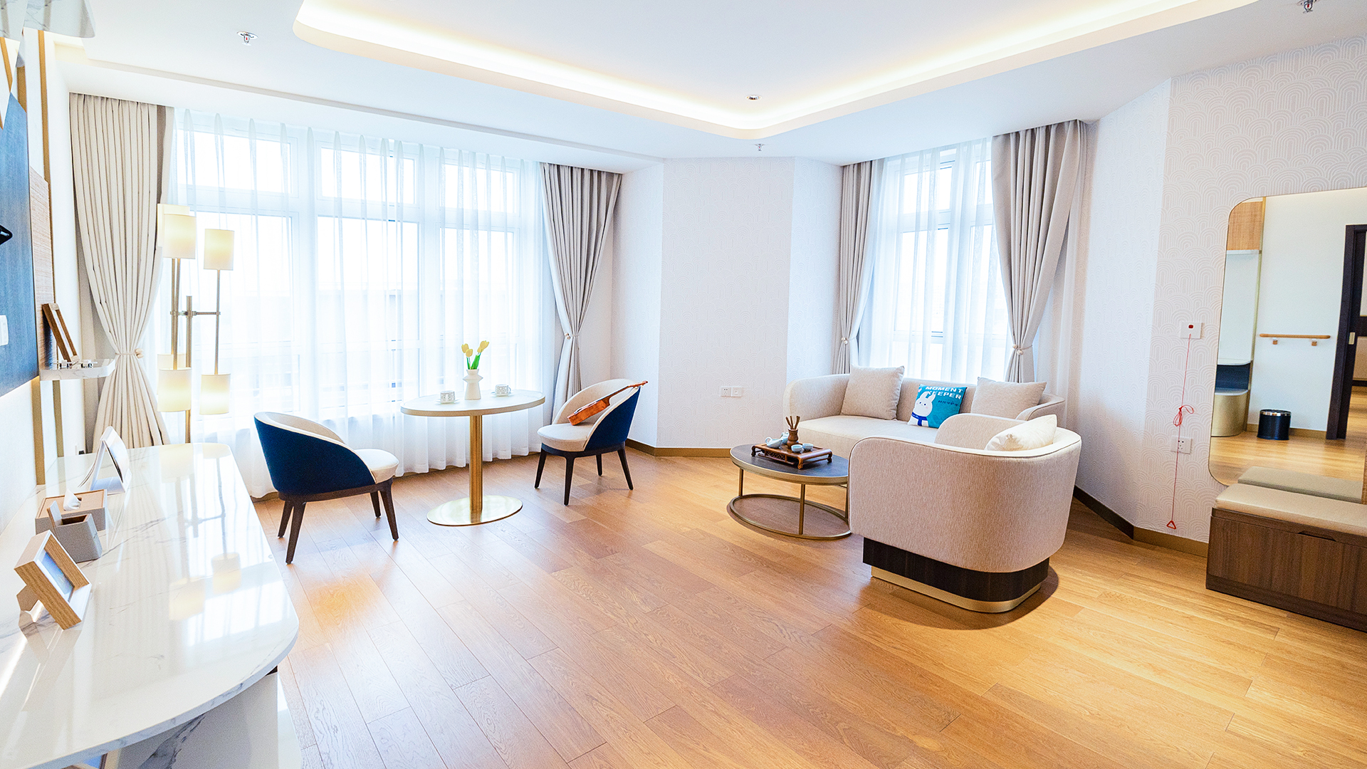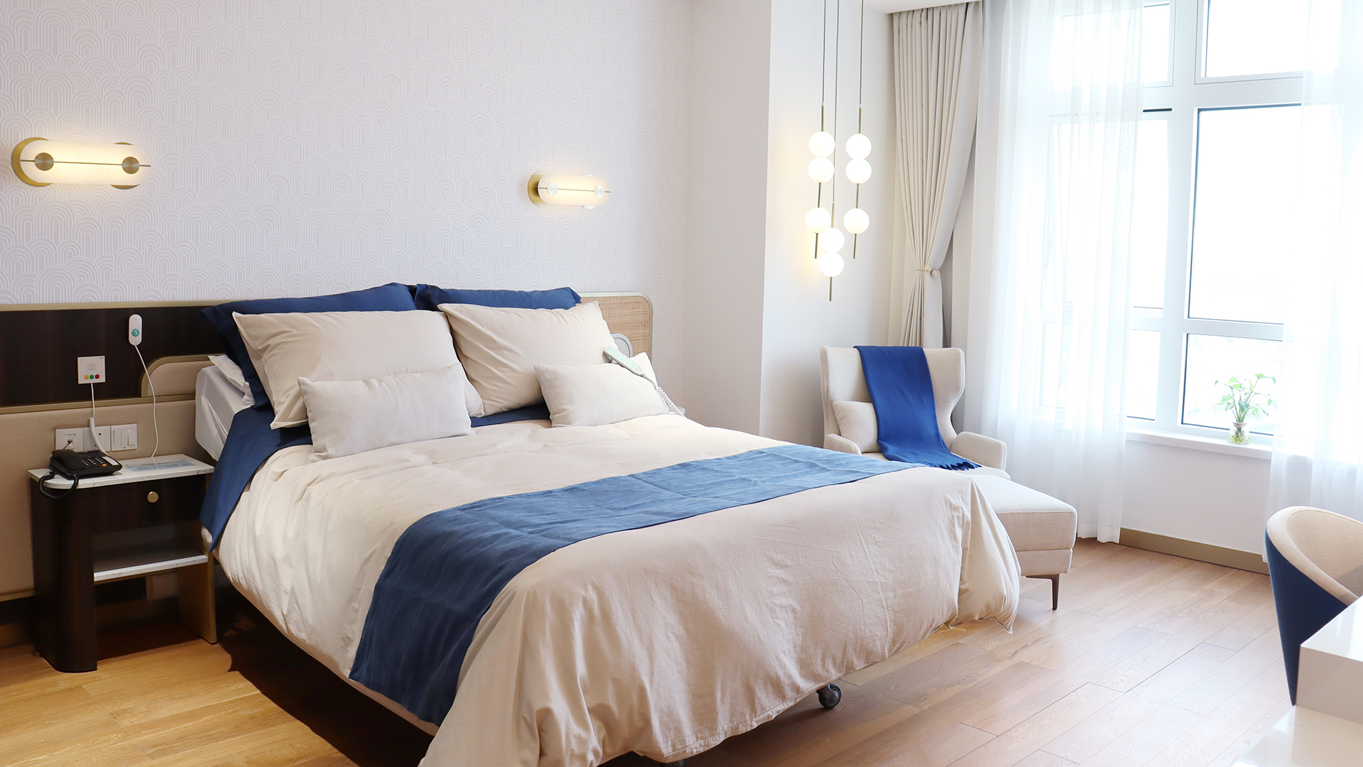 上海欧葆庭顾村国际颐养中心毗邻以樱花著称的宝山顾村公园,周边环境开阔优美,户外花园芳草如茵,建筑主体独特亮眼,红墙白窗风格典雅。颐养中心2022年获得LEED绿色建筑金级认证,为长辈们提供生态环保、自然和谐的居住环境。颐养中心共设有200多个房间,包括单人间、双人间以及VIP套间等不同房型可供选择。建筑内公共区域丰富,包括餐厅、咖啡厅、书画室、KTV、电影院等生活娱乐设施,以及医务室、康复室、水疗区、数字化康复设备等专业健康设施。2023年5月,颐养中心正式开业。